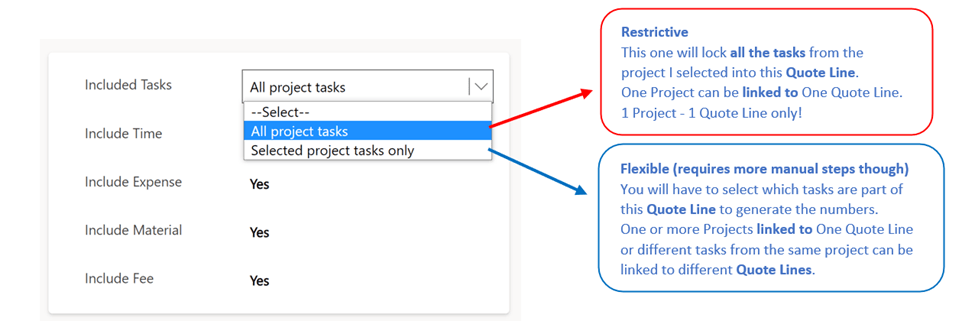 Important: You can have as many lines as you want, and EACH could be connected to one project or multiples. In order to do that, you MUST choose: Selected project tasks only